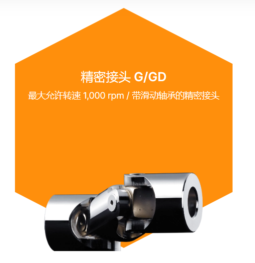 精密单万向节:- 精密万向节 G:带滑动轴承的标准型,转速高达 1,000 rpm.- 精密万向节 H:带滑动轴承的精密单万向轴,转速高达 4,000 rpm。精密双关节:- 精密接头GD:标准型滑动轴承,转速高达1,000 rpm.- 精密接头HD:带滚针轴承的单关节型,作为精密接头,速度从500到4,000 rpm,车队角度很大。可伸缩精密接头:- 精密接头 GA (HA):带滑动轴承 (GA) 或滚针轴承 (HA).- 精密接头 X (XD):带不锈钢制成的滑动轴承 (X) 或滚针轴承 (XD)。带快速锁定/快速更换联轴器的精密接头:- 精密接头 GR(HR):带滑动轴承 (GR) 或滚针轴承 (HR) 的快速锁定,速度范围为 1,000 rpm 或 4,000 rpm。