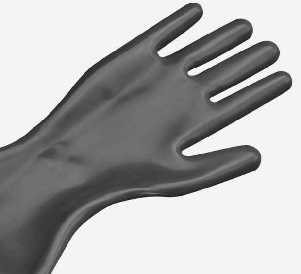 由溴化丁基橡胶 (BIIR) 制成的防护手套 Jugitec B 适用于手套箱中的压力,尤其是处理极性碳氢化合物,